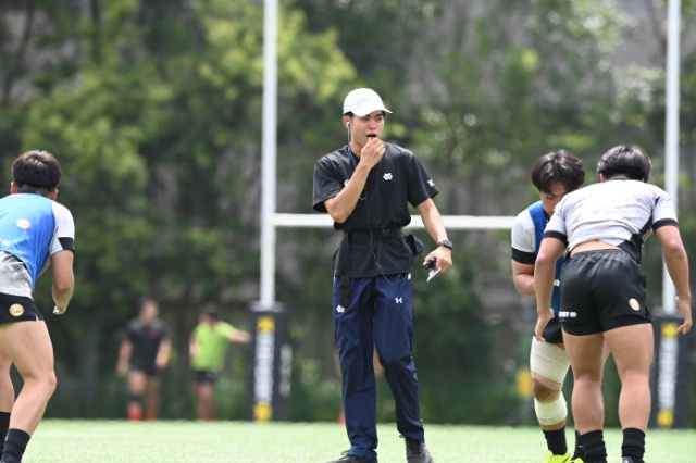 グラウンドでの練習中、トレーナーは学生コーチと協力しながら練習が円滑に進むように練習のサポートを行っています。