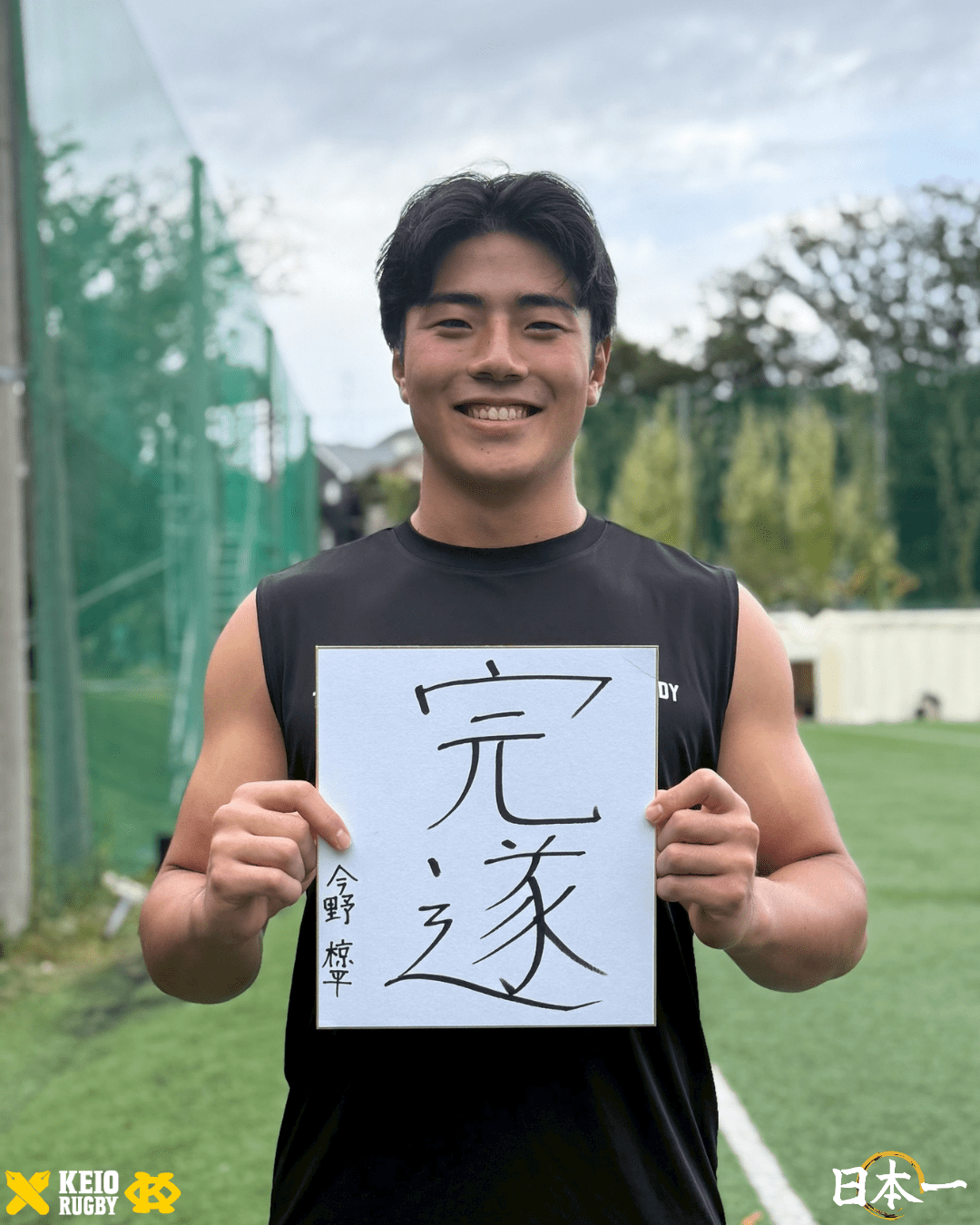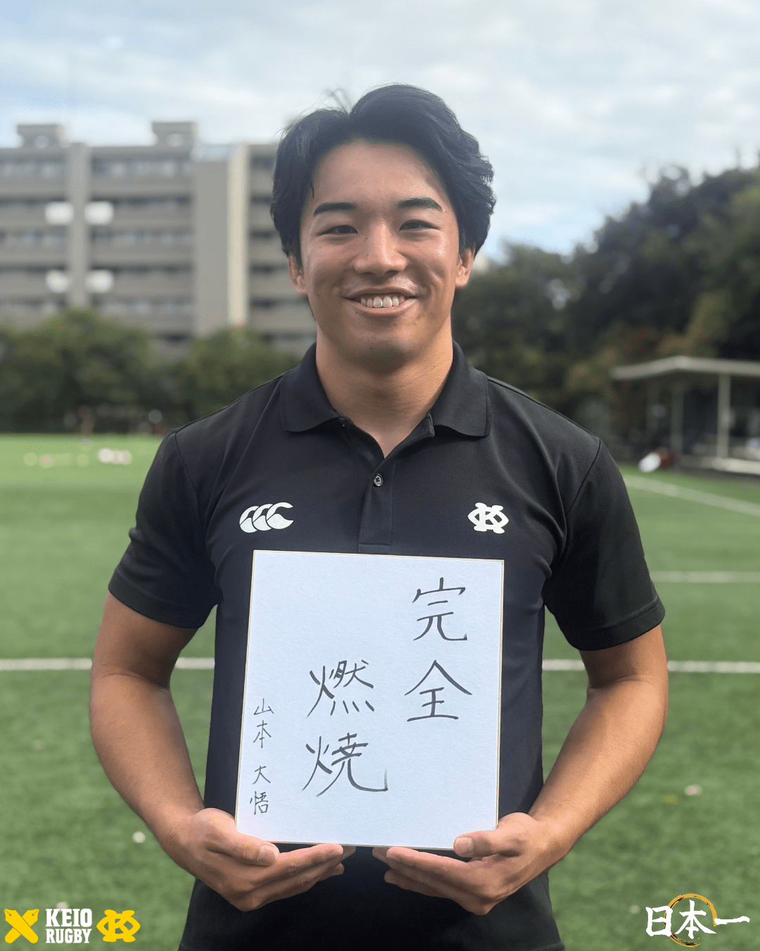 卒業後にラグビーから離れる決断をした自分にとって、大学ラグビーは11年のラグビー人生の区切りです。最後に振り返って後悔が無いように、全力で取り組んで完全燃焼を目指します。副将として、個人として、全身全霊でチームに貢献します。