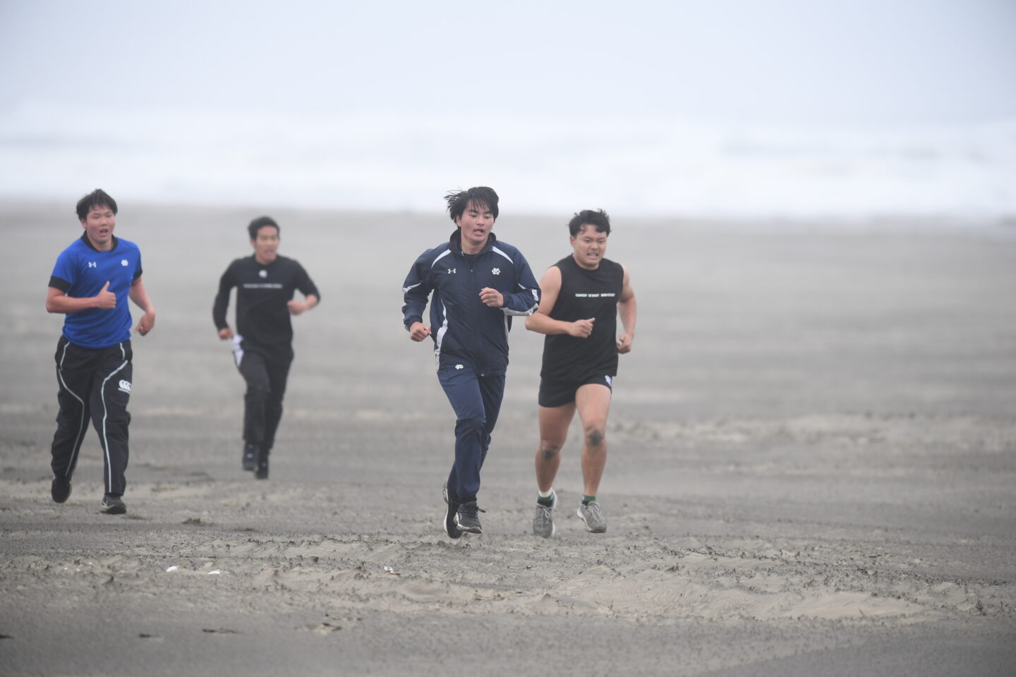 早朝からのトレーニングやグラウンドおよびビーチでのスキル練習など、選手たちは心身ともに高い負荷を受けながらも互いに声を掛け合い、励まし合いながら練習を重ねました。