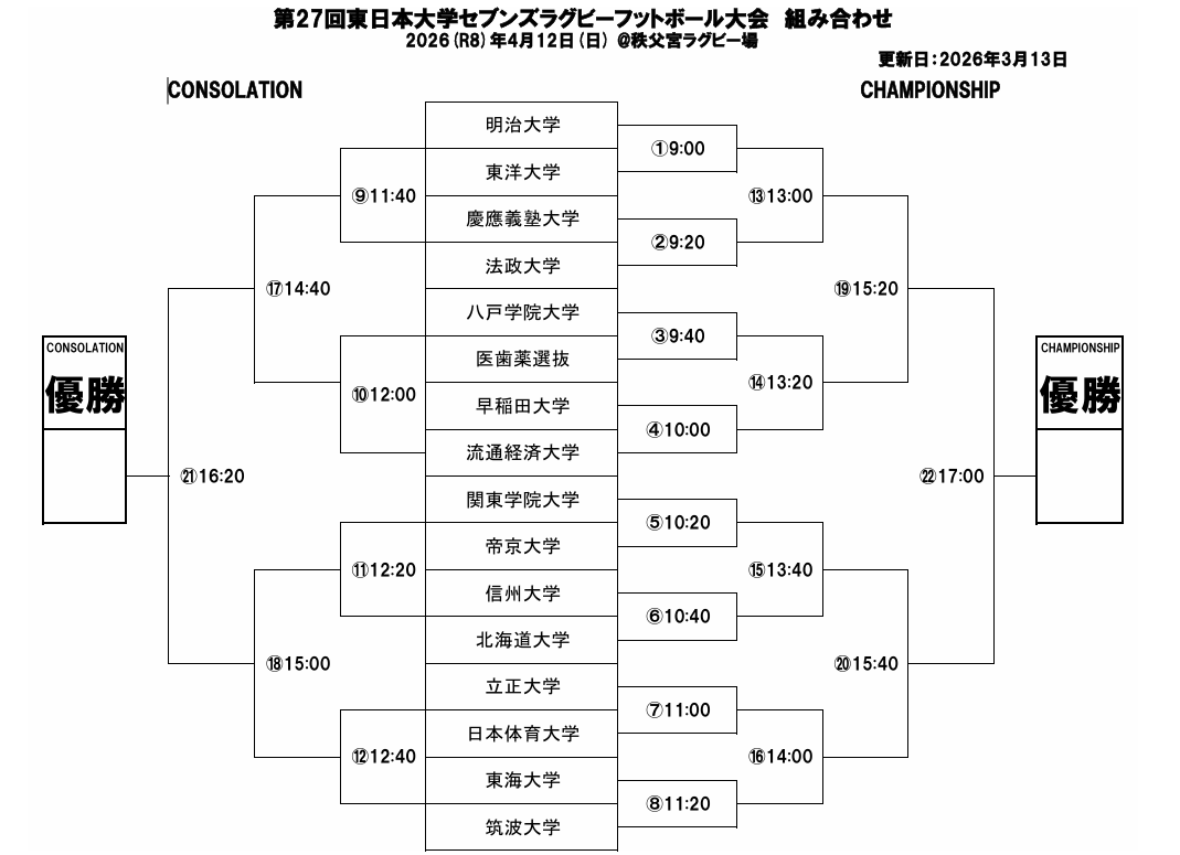 4月12日(日)に行われます、第27回東日本大学セブンズラグビーフットボール大会につきまして、お知らせがございます。